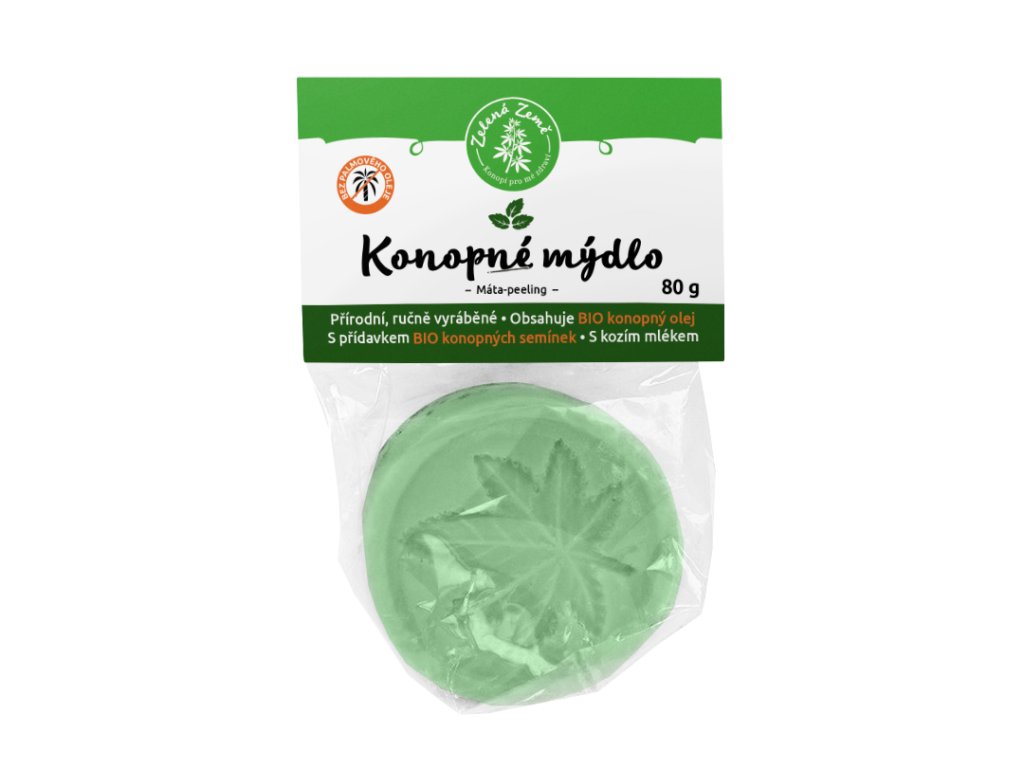 Peelingové konopné mýdlo s mátou osvěžuje a hloubkově čistí pokožku díky přírodním peelingovým částicím a hydratačním účinkům konopného oleje. Pro mastnou a smíšenou pleť. 80 g